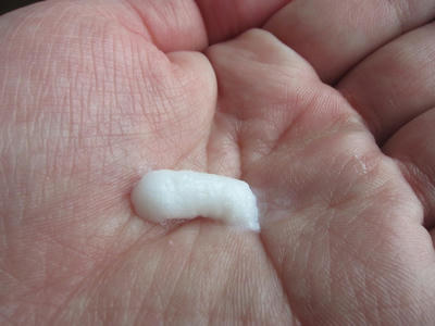 使用量の目安、約2センチを手にとって、